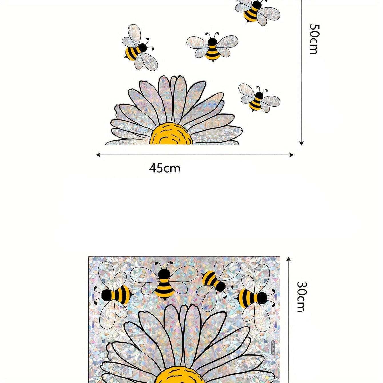 Ge dina fönster en charmig och livfull känsla med denna glittrande fönsterdekal från fonsterdekal.se. Dekoren har ett lekfullt motiv av surrande bin och en stor prästkrage med skimrande detaljer, vilket skapar en vacker ljuseffekt när solen lyser genom glaset.