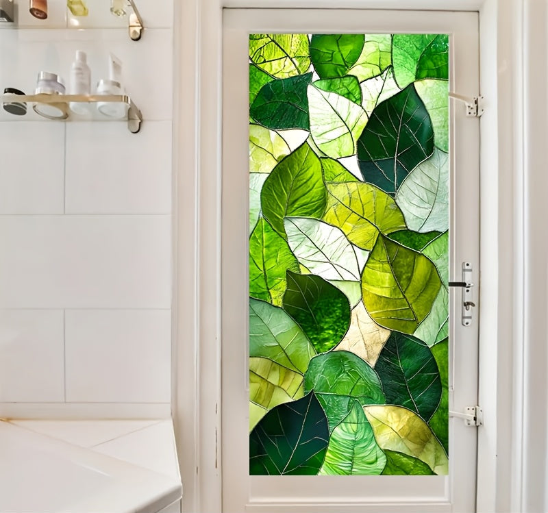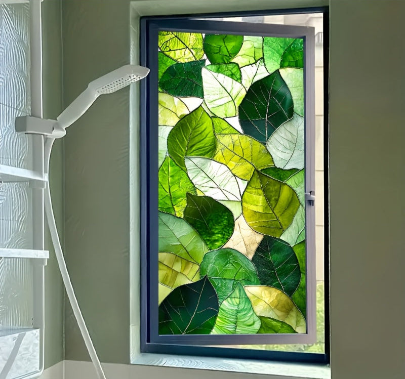 Skapa en fridfull och grönskande känsla i ditt hem med denna fönsterfilm med vackra löv i en stilfull glasmosaikdesign. Perfekt för att ge insynsskydd samtidigt som ljuset filtreras in på ett naturligt sätt.