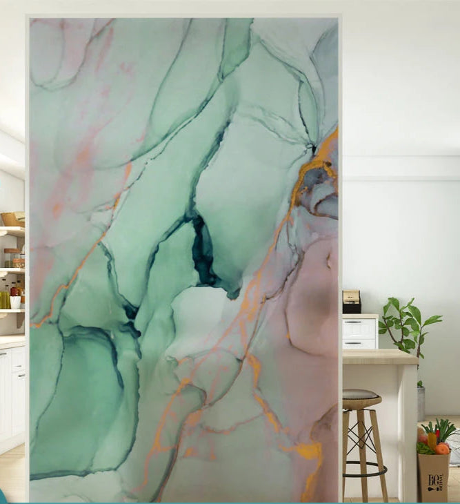 Ge dina fönster ett stilfullt lyft med en elegant fönsterfilm i abstrakt marmormönster med gröna och rosa nyanser från fonsterdekal.se. Perfekt för att skapa en harmonisk och privat atmosfär samtidigt som ljuset flödar in.
