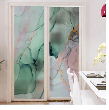 Fönsterfilm med marmor i gröna och rosa nyanser