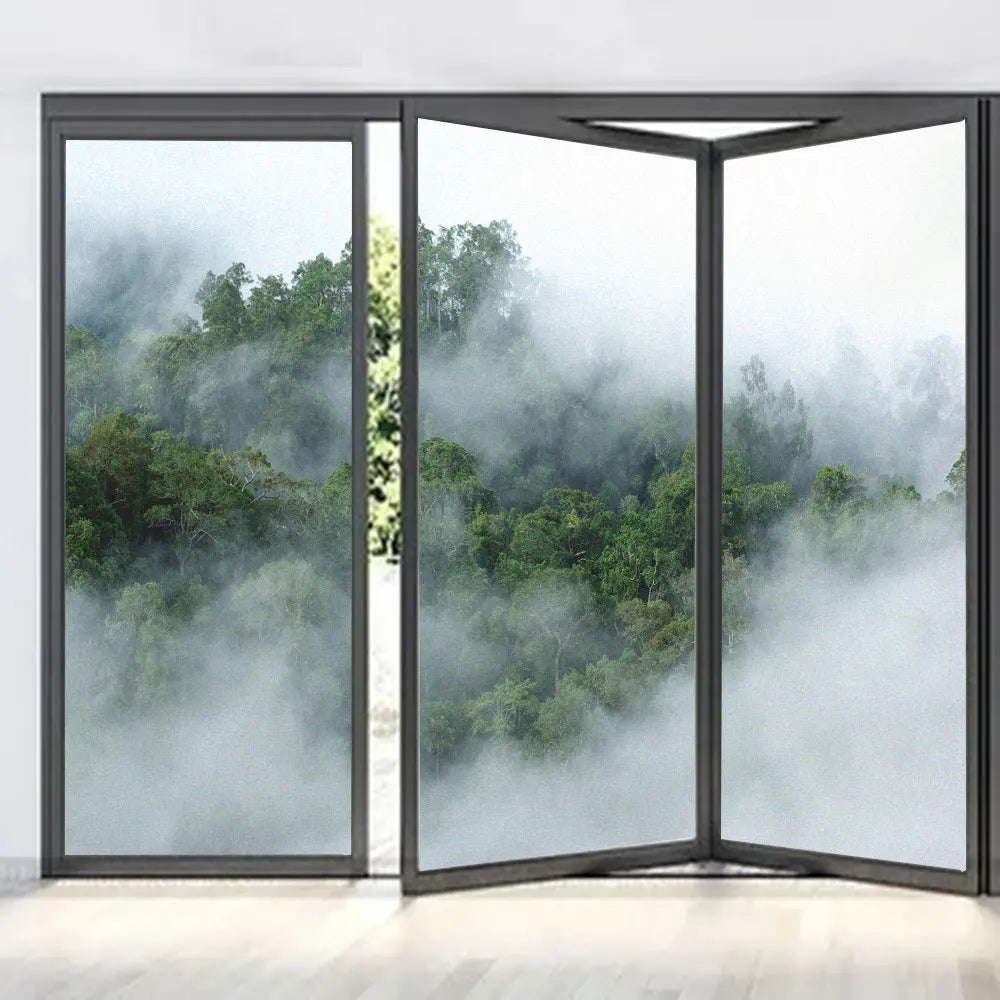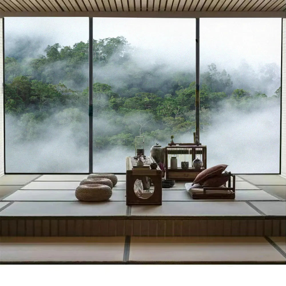 Skapa en harmonisk och avkopplande atmosfär i ditt hem med denna fönsterfilm som visar en dimmig skogsscen. Den frostade ytan ger ett mjukt ljusinsläpp samtidigt som den skyddar mot insyn. Perfekt för att ge en lugnande känsla i vardagsrum, sovrum eller på kontoret.