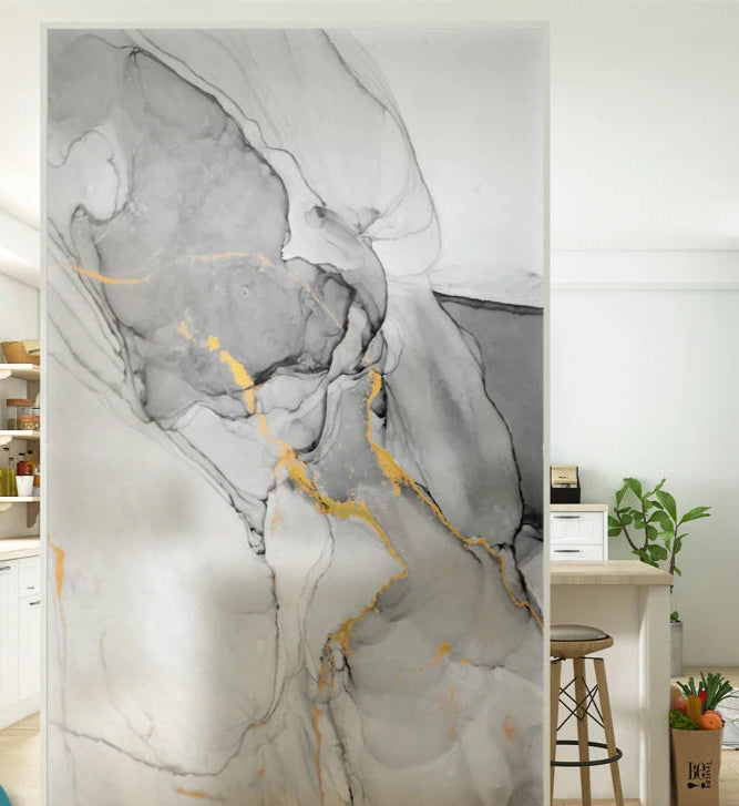 ✔ Stilrent marmormönster – Lyxigt grått med subtila gulddetaljer.