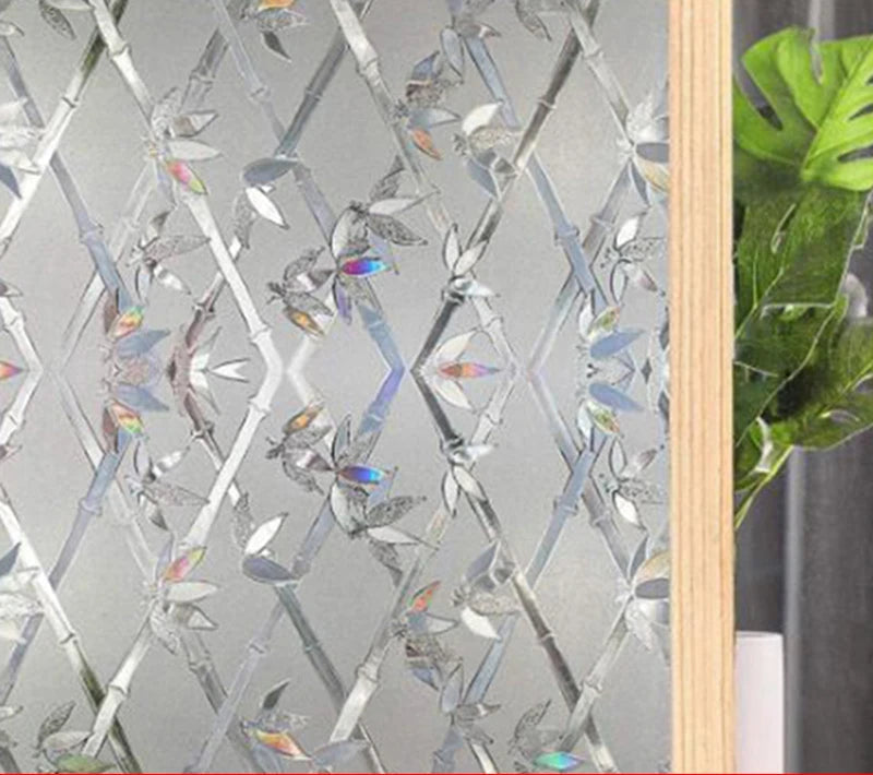 Ge dina fönster en exklusiv och stilren touch med denna fönsterfilm i holografiskt bambumönster. Med en subtil prismatisk effekt reflekterar filmen ljus på ett vackert sätt och skapar en dekorativ look samtidigt som den ger ett effektivt insynsskydd. Perfekt för badrum, kök, vardagsrum eller kontor.