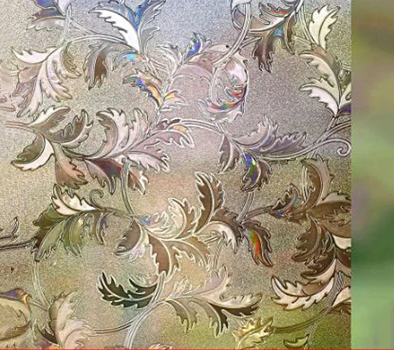 Ge dina fönster en elegant och dekorativ touch med denna fönsterfilm i ett vackert holografiskt lövmönster. Filmen skapar ett mjukt insynsskydd samtidigt som den släpper in naturligt ljus och reflekterar ljuset i regnbågseffekter beroende på vinkel och ljusstyrka. Perfekt för att förhöja atmosfären i hemmet, på kontoret eller andra utrymmen där du vill ha en stilfull och funktionell lösning.