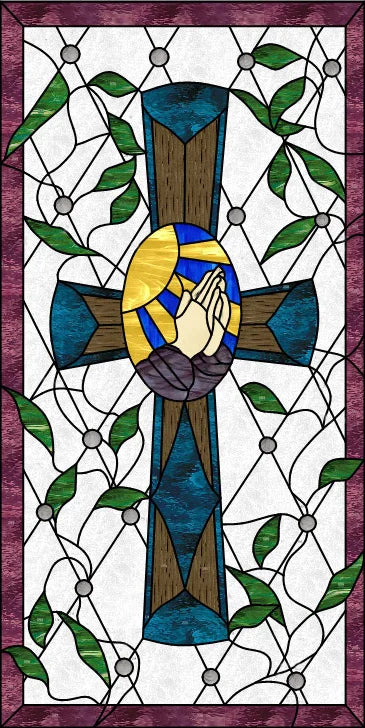 Fönsterdekor glaskors och bönehänder