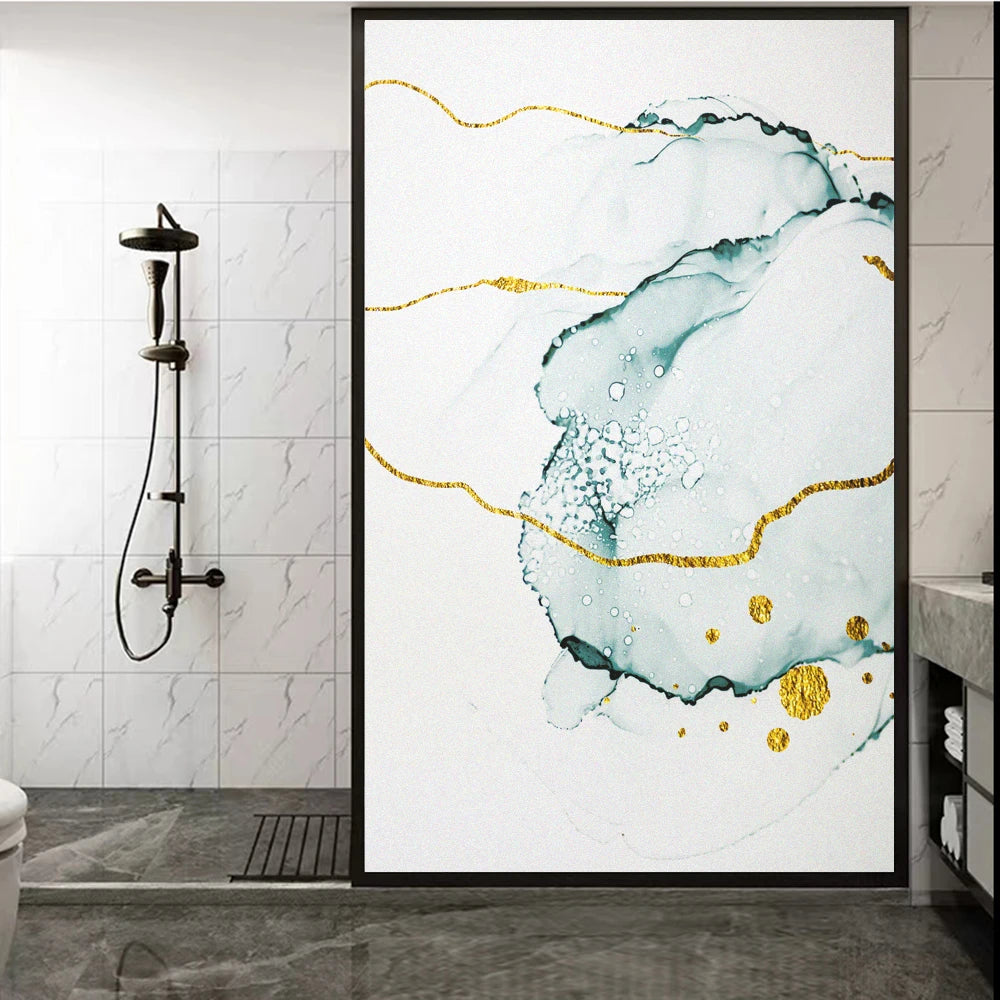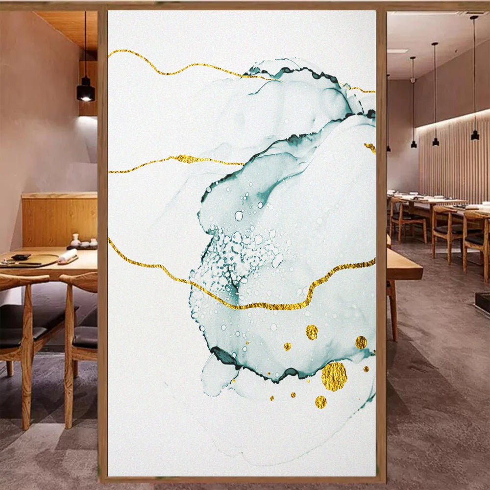 Skapa en stilfull och modern atmosfär i ditt hem eller på kontoret med denna exklusiva fönsterfilm. Designen har en sofistikerad marmoreffekt i mjuka gröna toner med inslag av gulddetaljer som ger en elegant touch.