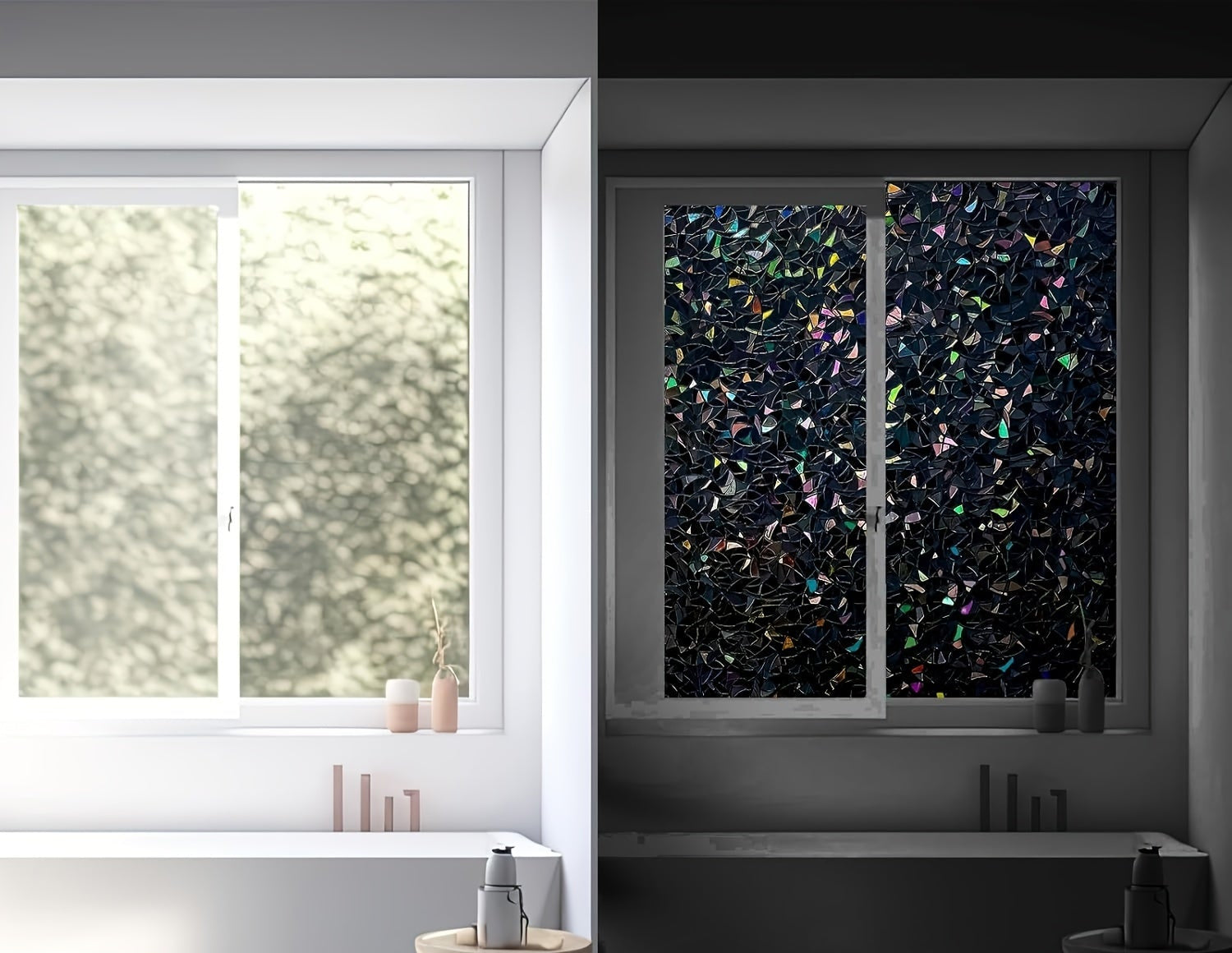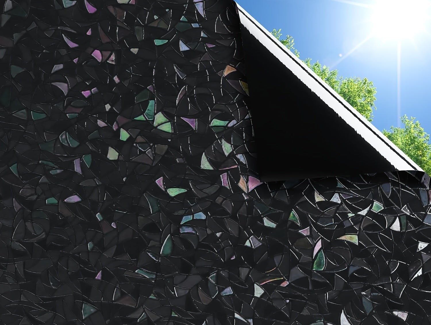 Skapa en dramatisk och elegant atmosfär med denna mörka regnbågseffekt-fönsterfilm. Den innovativa designen skiftar färg beroende på ljusförhållandena och ger ett stilrent insynsskydd, perfekt för badrum, sovrum och kontor.