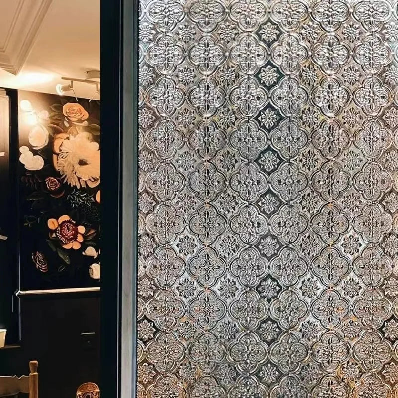 Skapa ett stilfullt och privat utrymme med denna dekorativa fönsterfilm med elegant ornamentmönster.