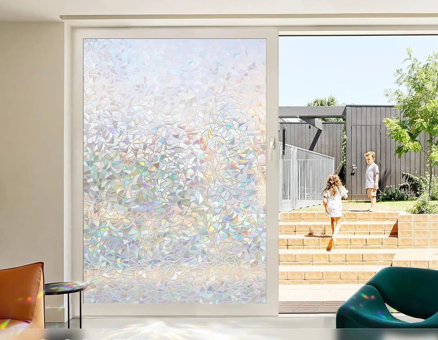 Ge ditt hem en elegant och färgsprakande uppgradering med denna dekorativa fönsterfilm. Den unika 3D-designen skapar en fantastisk regnbågseffekt när solljuset passerar genom fönstret, samtidigt som den ger insynsskydd och filtrerar starkt ljus. Det finns olika mönster att välja mellan så du lätt hittar den som passar bäst i ditt hem.