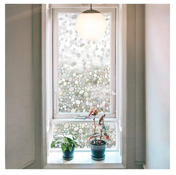Skapa en stilren och naturlig känsla i ditt hem med denna dekorativa fönsterfilm med stenmönster. Den ger en vacker frostad effekt samtidigt som den filtrerar in ljus och skyddar din integritet. Perfekt för badrum, kök, vardagsrum eller kontor där du vill ha avskildhet utan att blockera dagsljus.